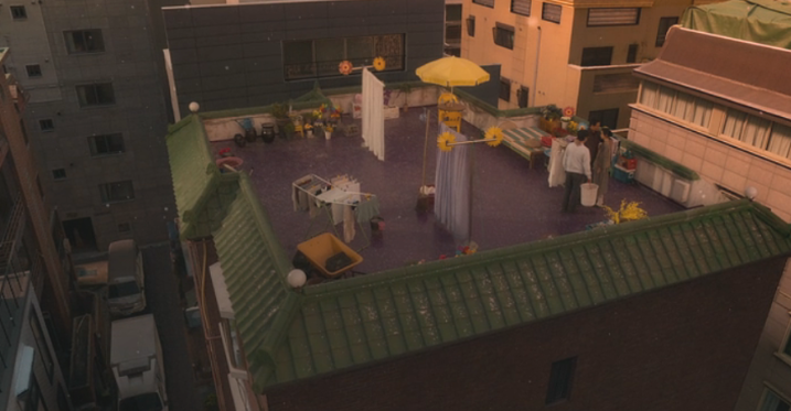 옥상 보라색 페인트 특이하네